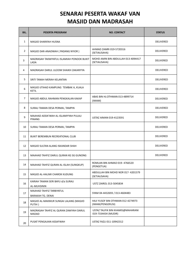 SENARAI PENERIMA & BAKAL PENERIMA WAKAF VAN JENAZAH